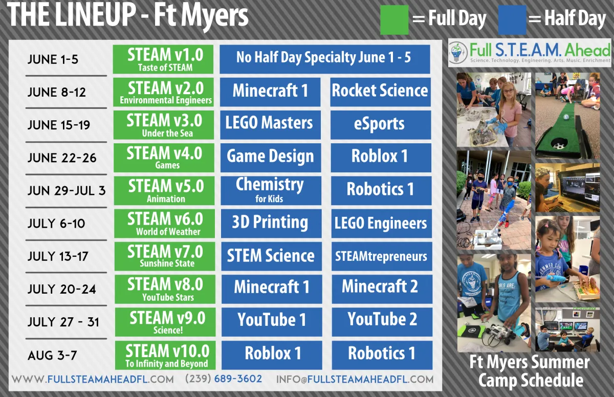 Full STEAM Ahead Specialty Summer Camps are the perfect way to keep your child growing all summer long. First, our STEM Summer Camps and Arts Summer Camps allow children to dig deep into topics that they love in a way that helps them grow intellectually and socially. Additionally, Our campers make new friends with common goals. Finally, they spend their summer using problem solving skills and creativity. All specialty camps include access to our Maker Traits, STEAM Cents, Challenge Badges, and ample learning opportunities across the STEAM spectrum.